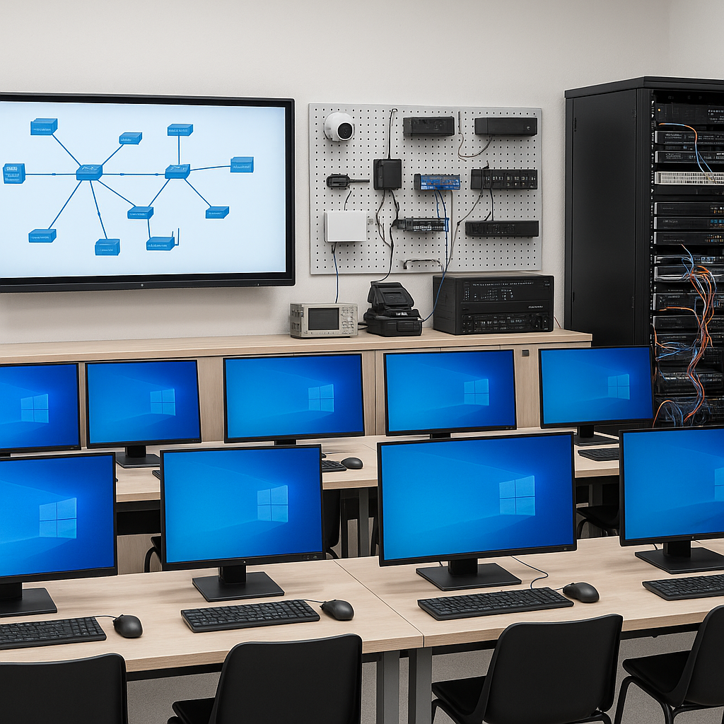 The training program is designed to prepare specialists who are able to design, implement, administer, maintain, and test computer networks, server infrastructures, and various information technology solutions. The training process uses modern equipment that meets current industry and education standards, allowing students to perform practical tasks that realistically reflect the requirements of the labor market.