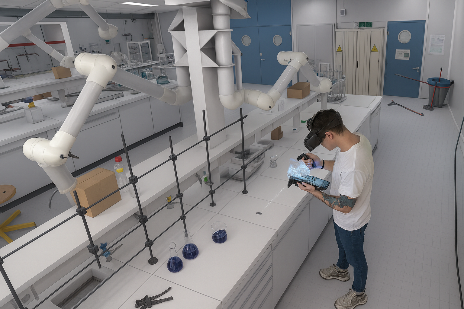 VR laboratory – allows students to perform chemical tests in a virtual space, learning safety rules, reagent mixing, reaction control, and hazard recognition.