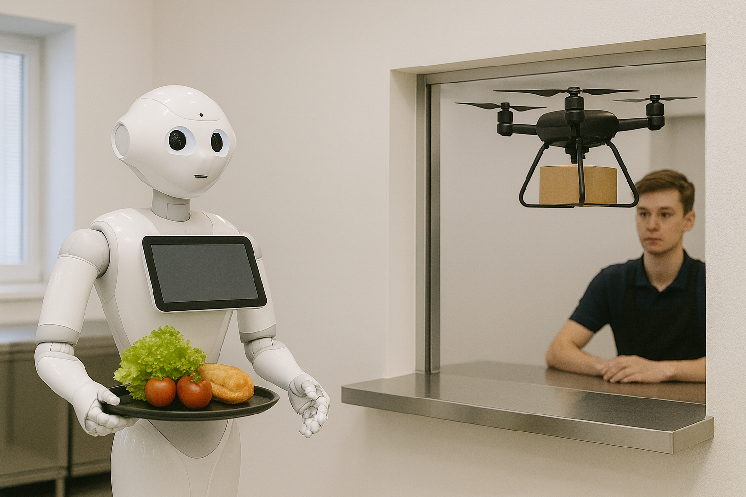 The system allows the entire service process to be simulated: from order taking, drink preparation, table or bar service, order packaging to delivery to the customer using unmanned aerial vehicle technology.